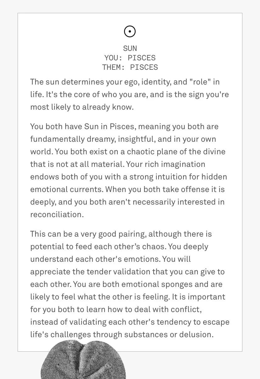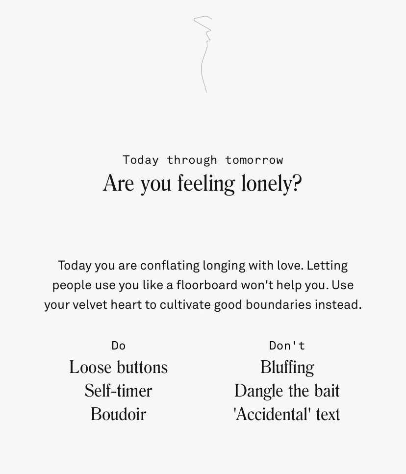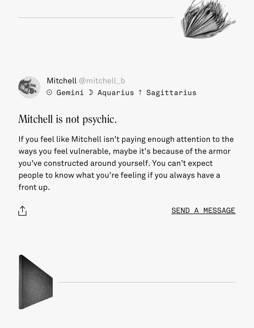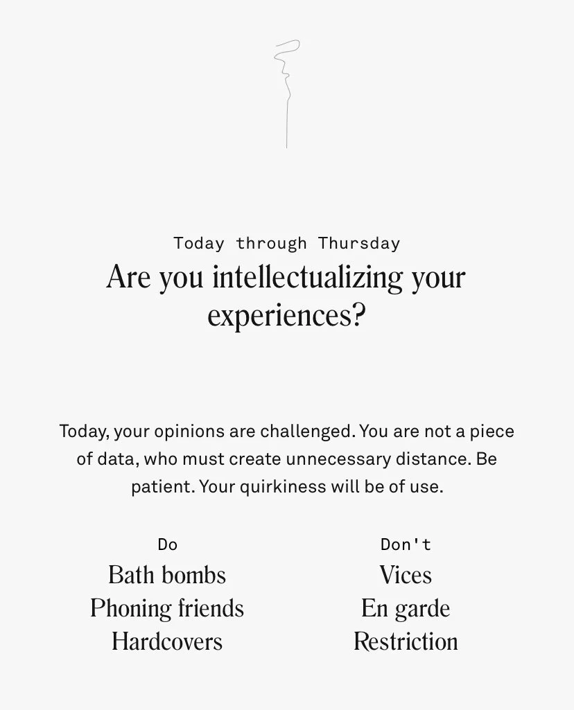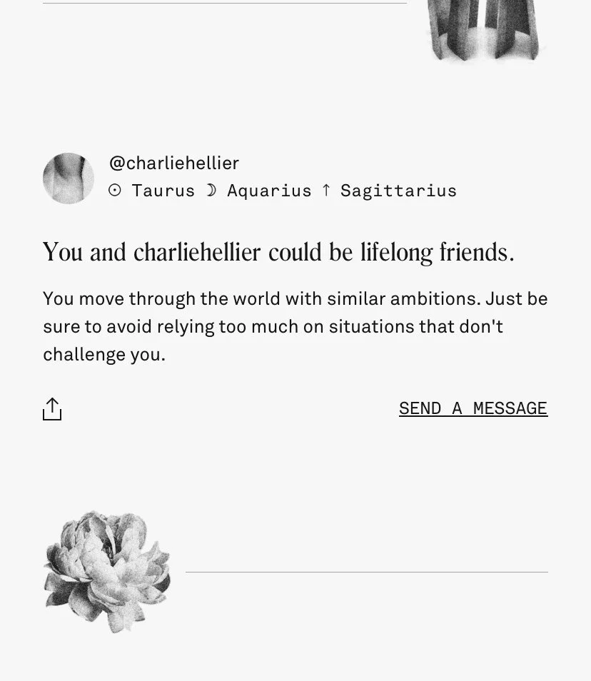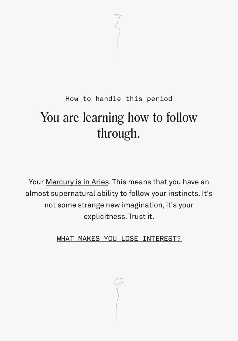 I used my knowledge of trends and memetics to write resonant in-app content. I also played a critical role in developing a content system of dynamic variables, making it possible to generate millions of hyper-personalized horoscopes with only hundreds of content pieces.